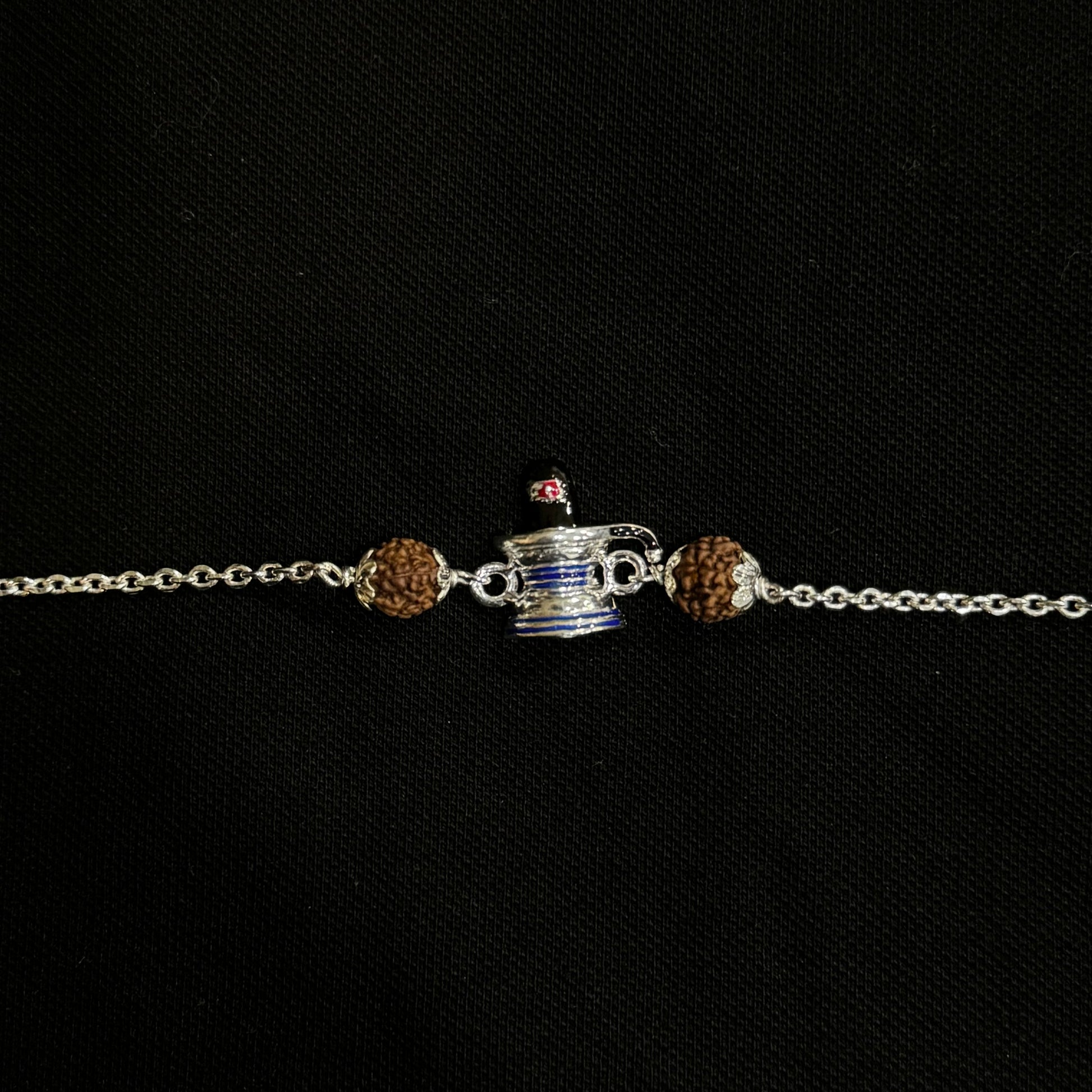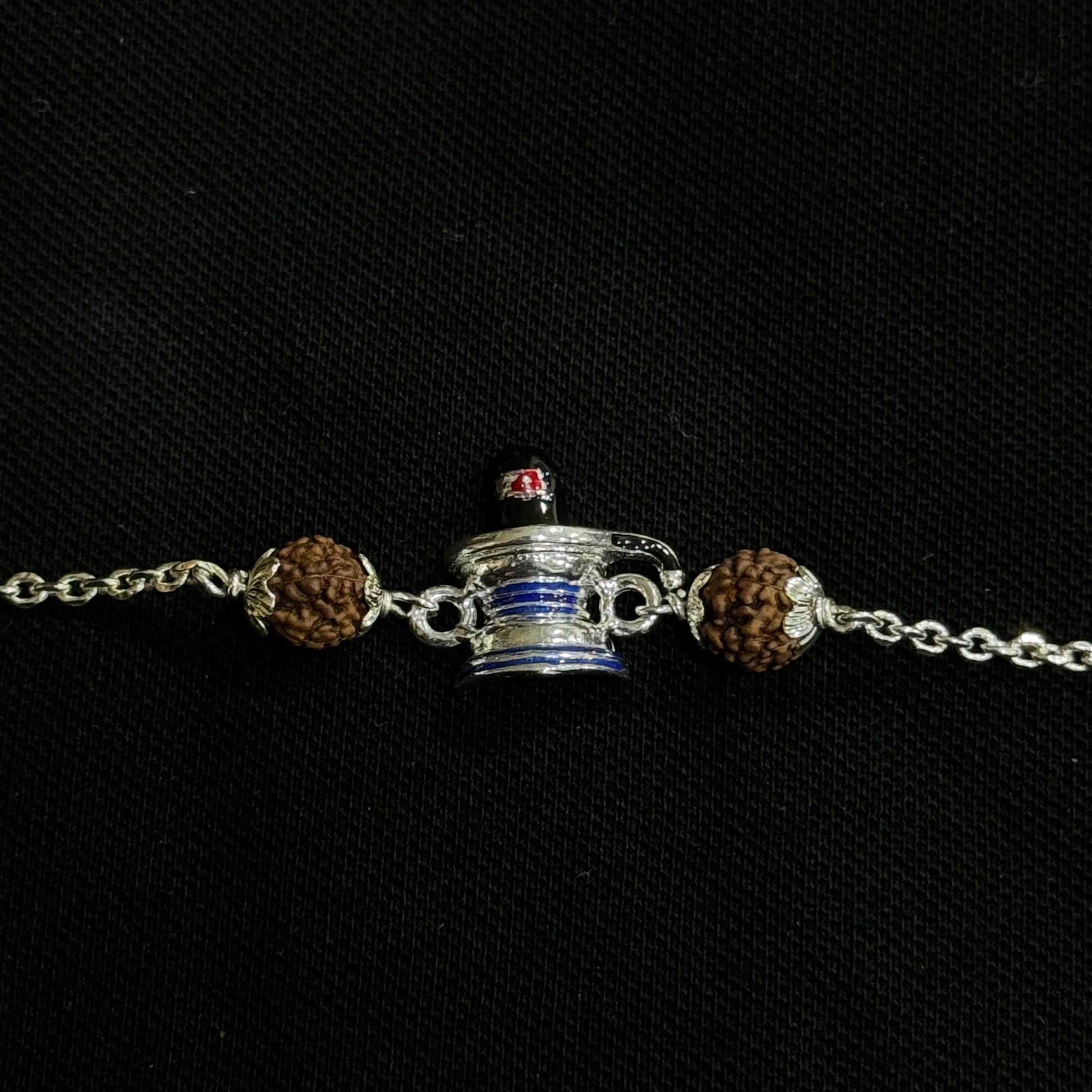 Auspicious Shiv Ling in the center, with Rudraksh and silver chain, which can be worn as a bracelet.